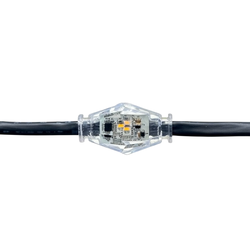 New Diamond lights to use as year-round canopy wrapping on trees, curtains, chandeliers, or whatever you can imagine. These 24volt diamond lights are the brightest Rainmin RGBW+2 light strings with 2 x RGBW/bulb with 360º light spread, making them ideal to shine line in all directions. Drive effects via ArtNet, Rainmin WEC & NEC, or the Unicorn Cloud controllers. Multiple options to fit all types of designs and installations.
